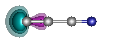 between the terminal pairs, leaving the 2s pairs on the terminal C and N atoms to be pushed out along the molecular axis.