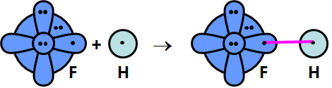 While it is not too pronounced, the fluorine 2s2 orbital (bottom frame) is clearly pushed away from the new bond pair that forms. The bond pair takes precedence, so the 2s2 pair moves due to pair-pair repulsion. | ||||||||||||||||||||||||||||||||||||||||||||||||||||||||||||||||||||||||||||