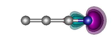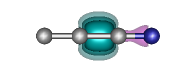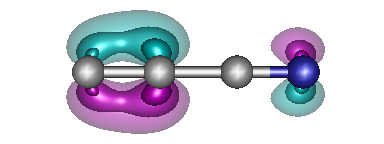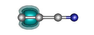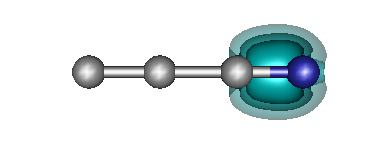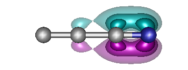 between the terminal pairs, leaving the 2s pairs on the terminal C and N atoms to be pushed out along the molecular axis.